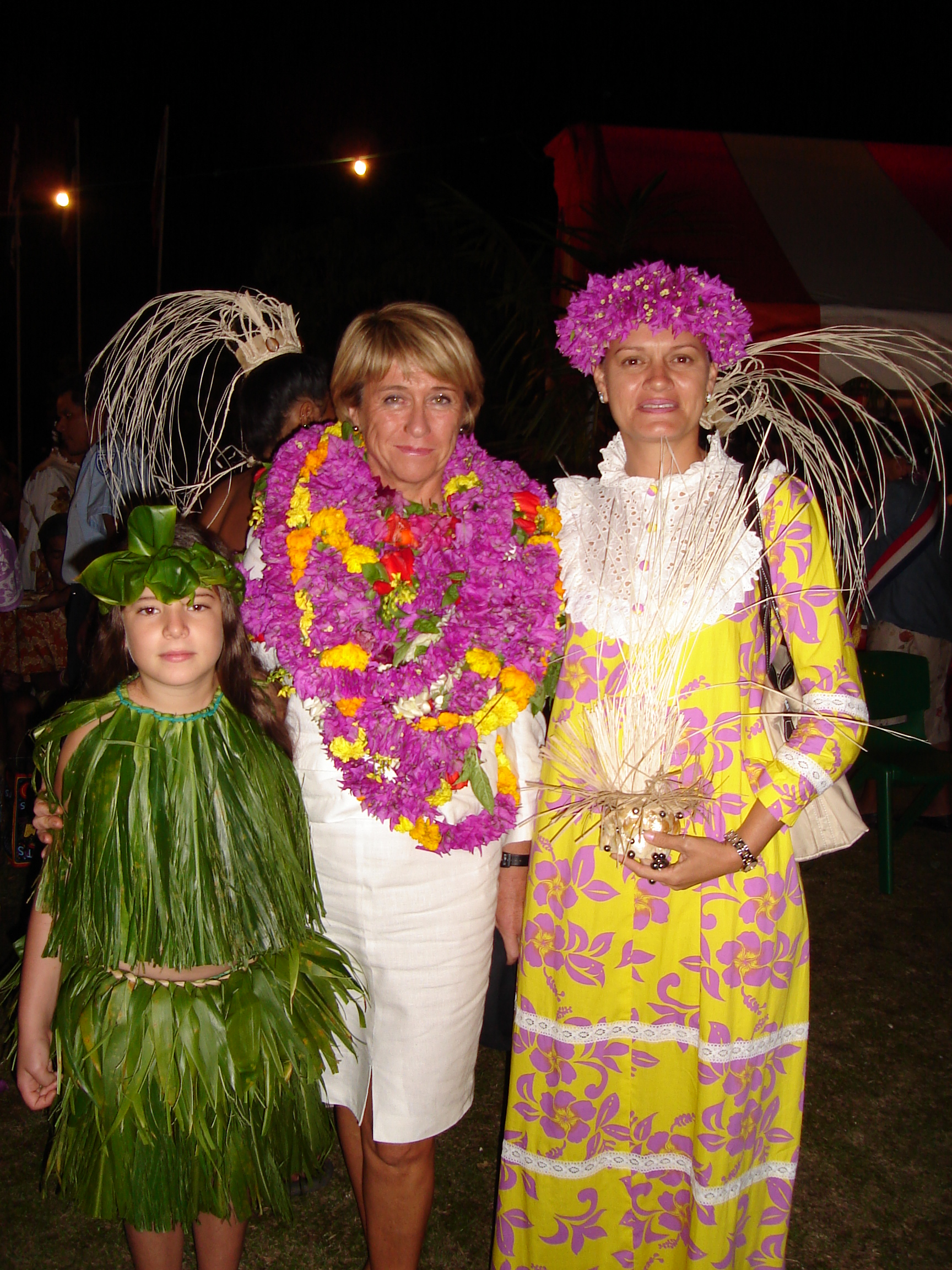A GAUCHE YVANI MATARENA TEPEIRU YVANI =CONTRACTION DE YVES ET ANNIE.MATARENA =MADELEINE SA GRAND MERE.ET TEPEIRU ET LE NOM D/UNE PRINCESSE DE AKAMARU BERCEAU DE LA FAMILLE CARLSON A DROITE L/AMOUR DE MA VIE ANNIE AU CENTRE LE HAUT COMMISSAIRE